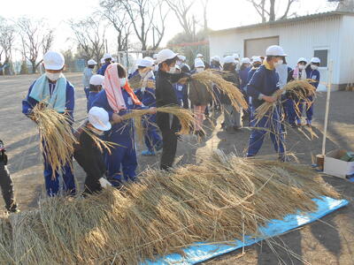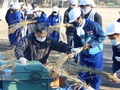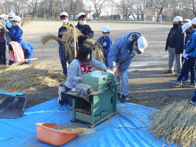 本日5・6時間目に脱穀と籾摺りを行いました。