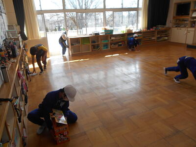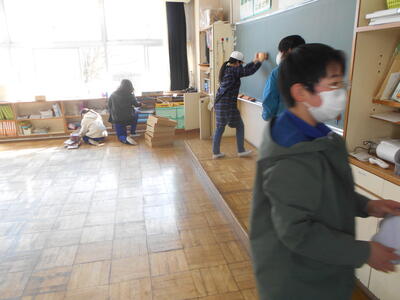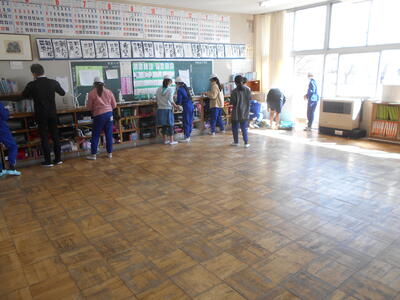 早く終わると、棚の上、ロッカーの中、黒板のまわり、清掃用具入れなど進んで清掃する場所を見つけていました。