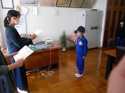 「ありがとうございます!」と、元気いっぱい賞状を受け取りました。