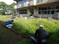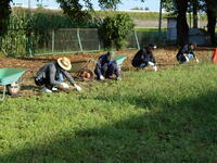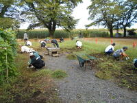2年生、5年生保護者の皆様、PTA役員の方々に農園及び花壇の除草、落ち葉清掃を実施していただきました。
