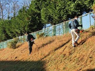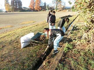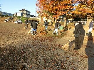 落ち葉掃き、土手の草刈り、トイレ掃除、池の清掃、側溝清掃のほか、いつもお世話になっている旧吉田整形外科の駐車場や学校近くの富士が丘公園も清掃しました。