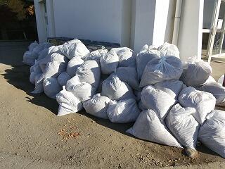 集まった落ち葉はごみ袋に集めました。こんなにたくさん集まりました。