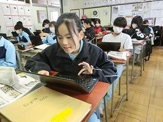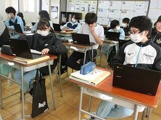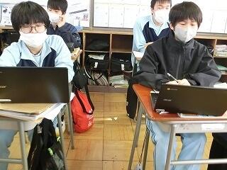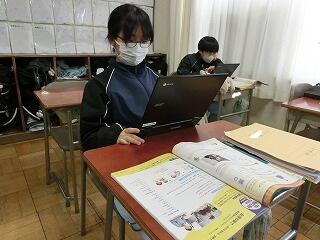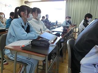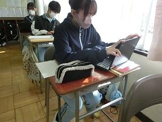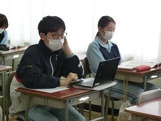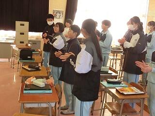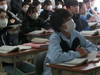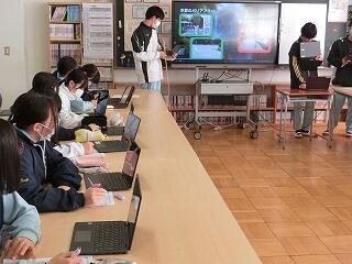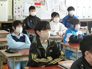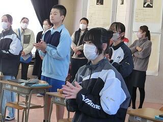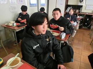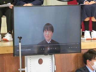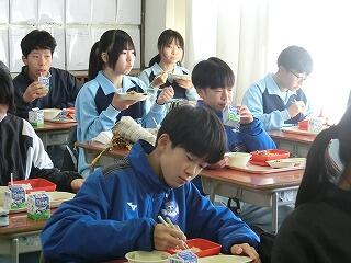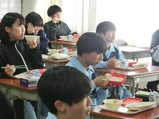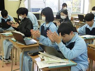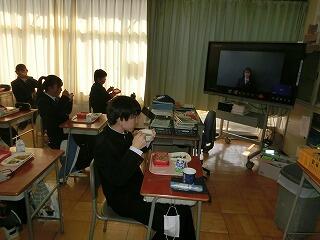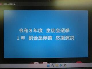 給食の時間は、食事をしながら「令和8年度生徒会役員選挙 応援演説」を動画で視聴しました。