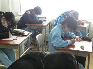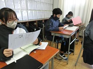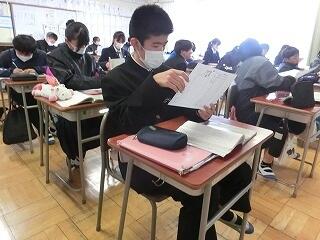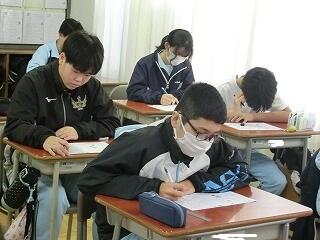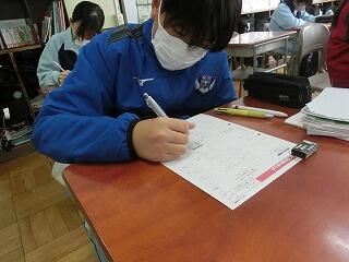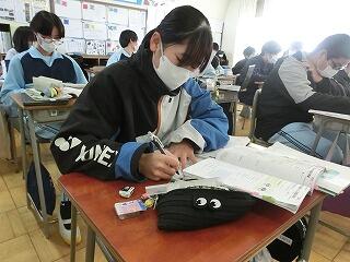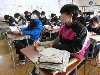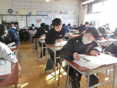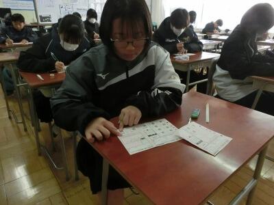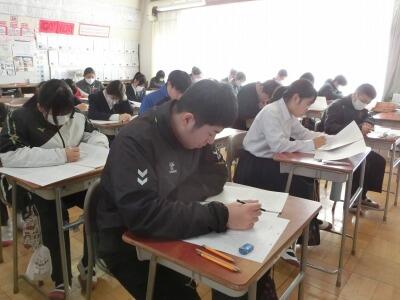 全学年テストです。1・2年生は真岡市学習状況調査、3年生は実力テストでした。