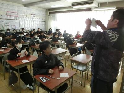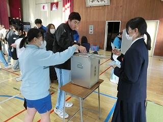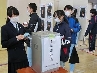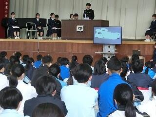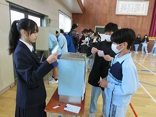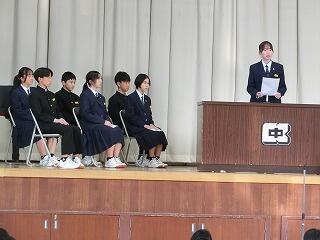 令和8年度生徒会役員選挙が行われました。投票に先立ち、立候補者による立会演説会を開催しました。どの候補も自分の考えを立派に発表しました。