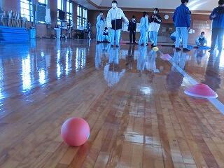 生徒会立会演説会準備の隣では、ボッチャを行っているクラスもありました((ボッチャ以外にも集まっているグループがありました)