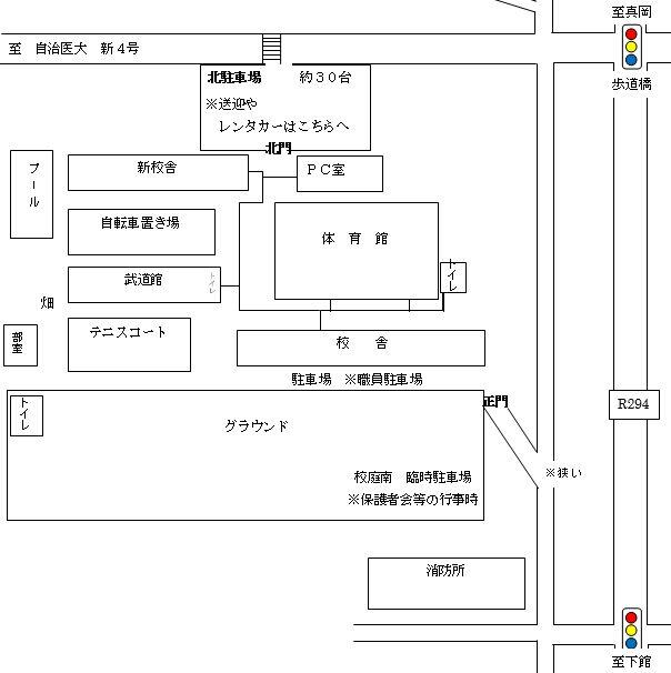 本校は、東経139度57分50秒,北緯36度22分40秒,海抜51mの地点で町の高台にあり、自然に囲まれた緑豊かな広い敷地を有している。