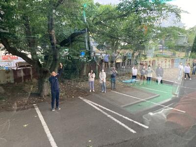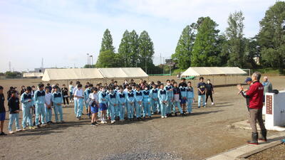 清掃終了後、竜巻が発生した想定で訓練を実施しました。