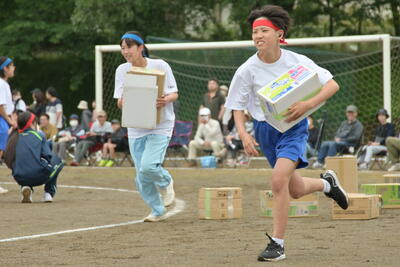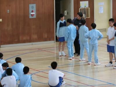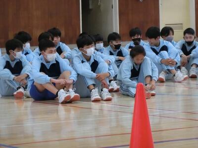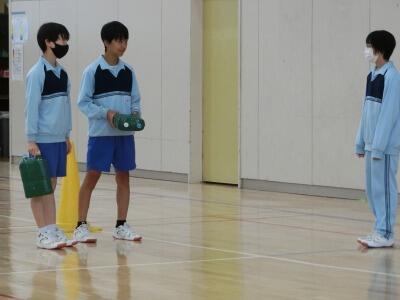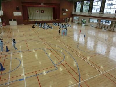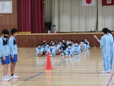 学年ごとに体育館で練習をしました。障害走の並び方や実行委員による説明、学年種目の練習などに励みました。