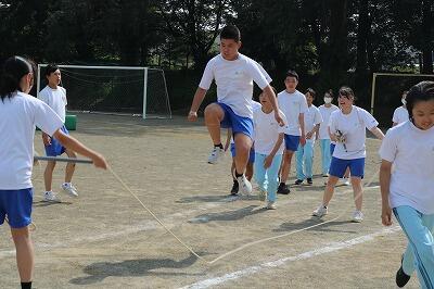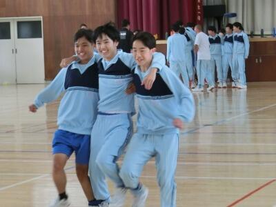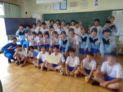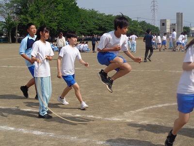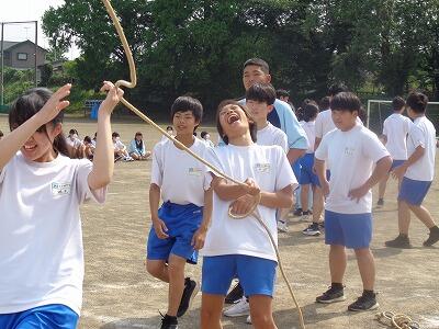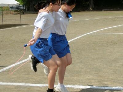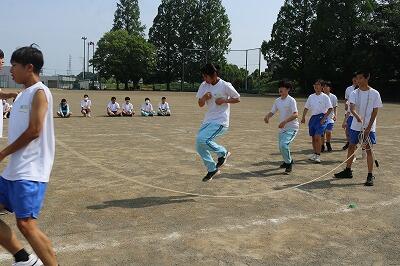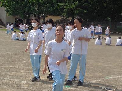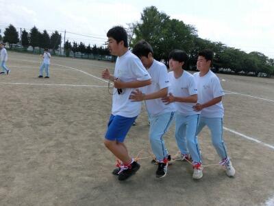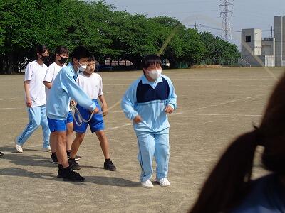 放課後生徒会の時間として、クラス対抗で8の字跳び大会を行いました。優勝は1年1組でした!!
