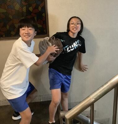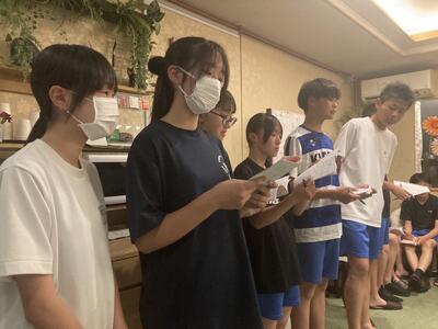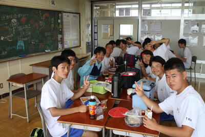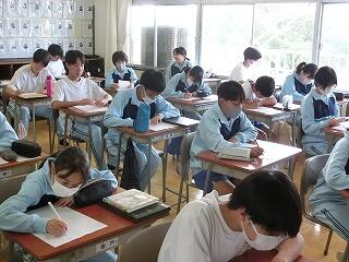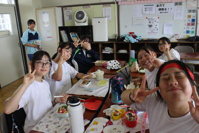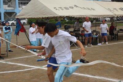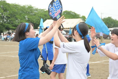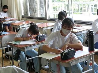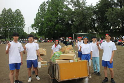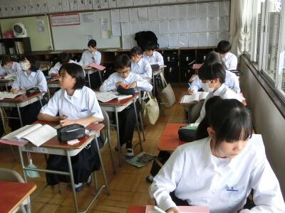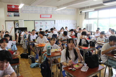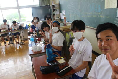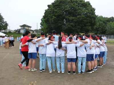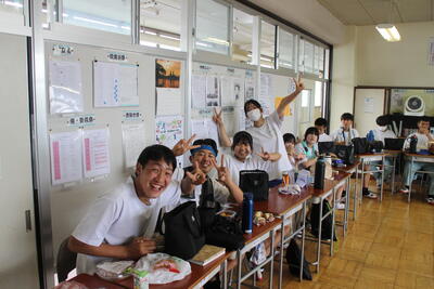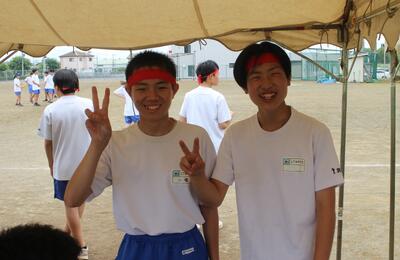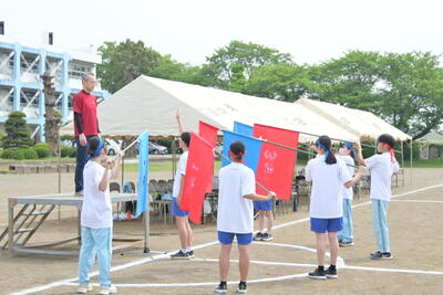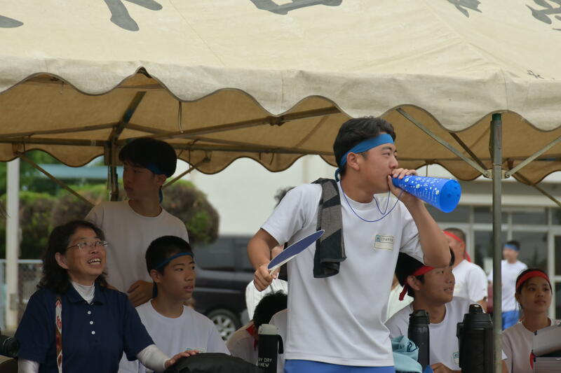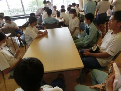 今年は各学年2クラスなので、縦割りで色別対抗戦が「玉入れ」「しっぽとり」の2種目用意されています。作戦会議を開催しました。また、各クラスで、うちわ作成をして、コメント記入なども実施しました。校長室に来た生徒もいました。