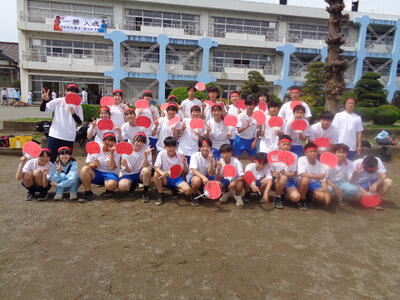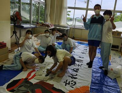運動会に向けて、久下田中美術部が心を込めて仕上げました。作品の完成に、涙が出るくらいの歓声と拍手がわきおこりました。