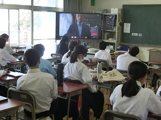 朝会をリモートで実施し、校長先生が学力向上に向けた話をしました。効率の良い学習の仕方なども紹介されました。