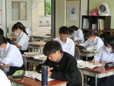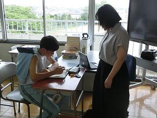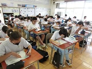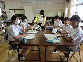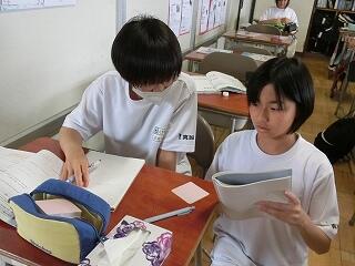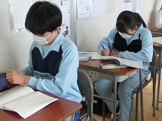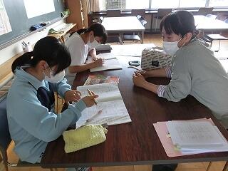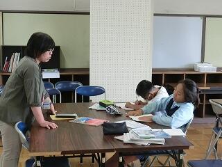 毎週金曜日は学習の時間です。1週間の学習の振り返り(復習)や週末課題を行いました。また、わからないところは先生に聞きながら学習する生徒もいました。
