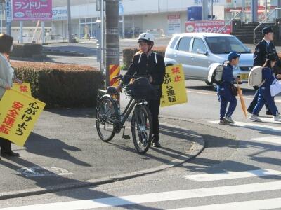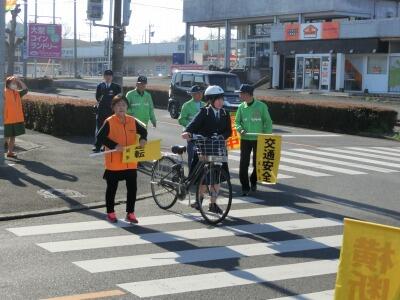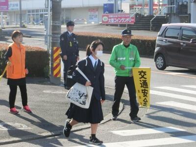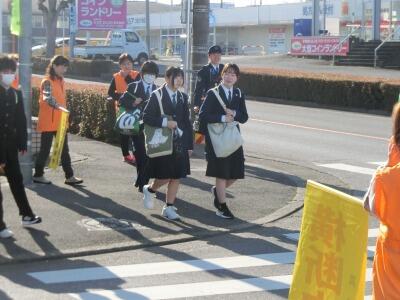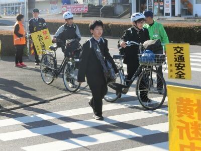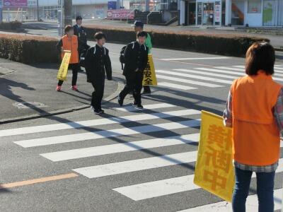 交通安全週間中の登校の様子です。明るいあいさつをしながら元気に登校しています。