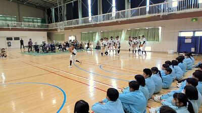 今日から部活動が再開されました。定期異動にともない新しい部活動顧問を生徒に紹介しました。