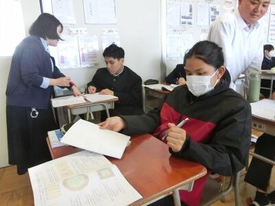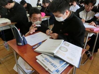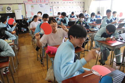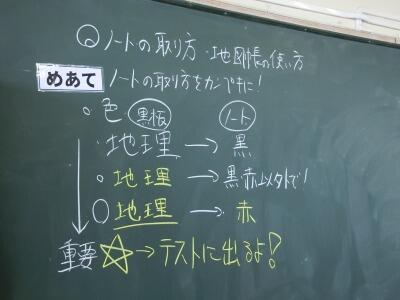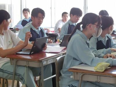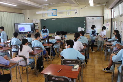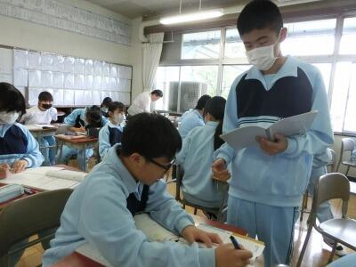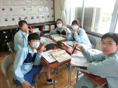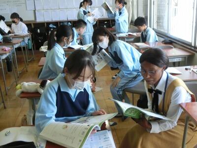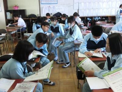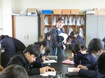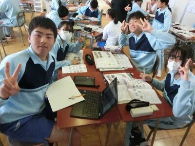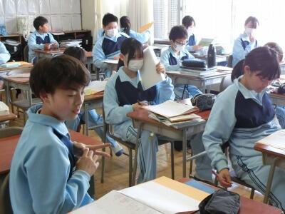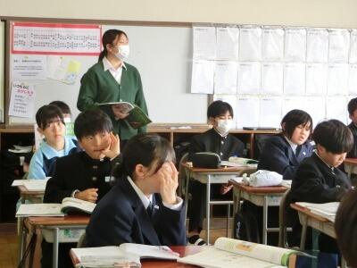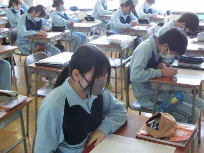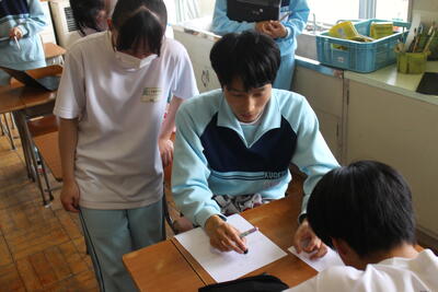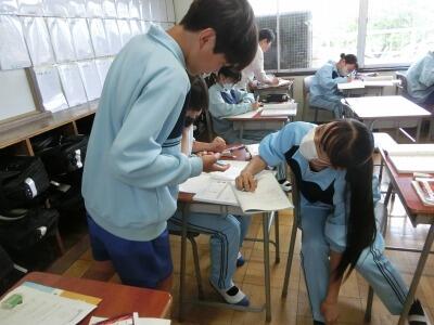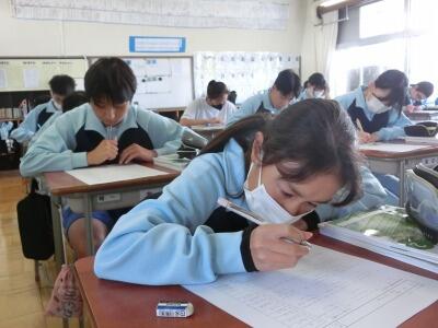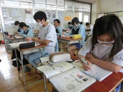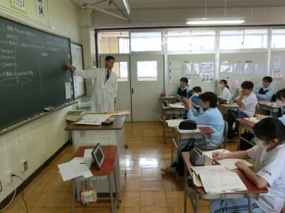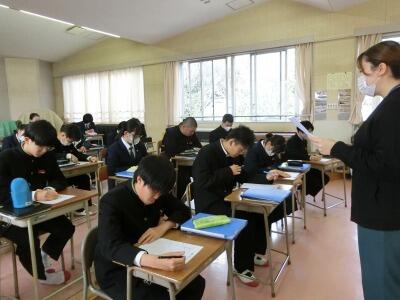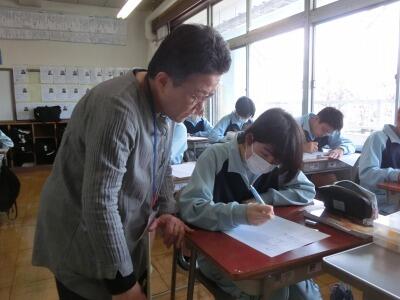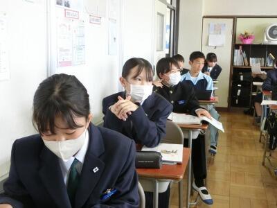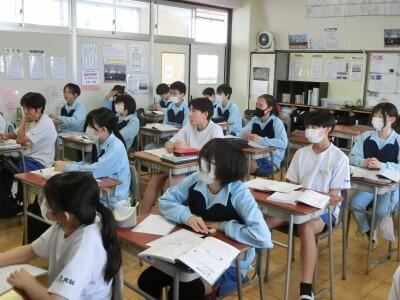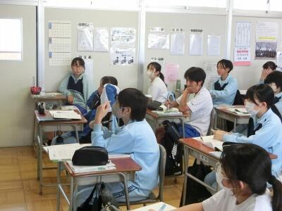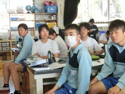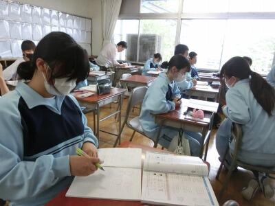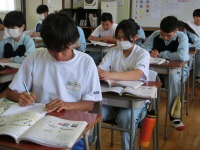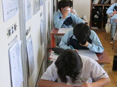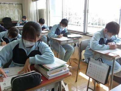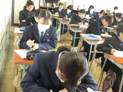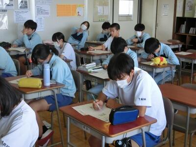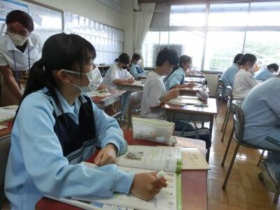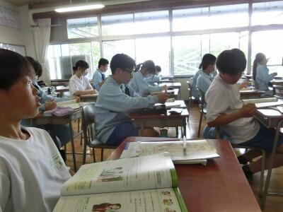 1年生は美術と音楽、2年生は体育と理科、3年生は数学と英語でした。どのクラスも真剣な生徒の表情がありました。
