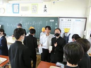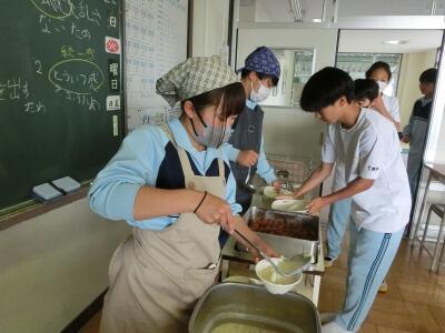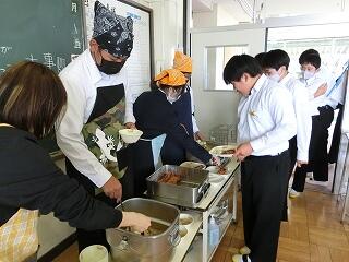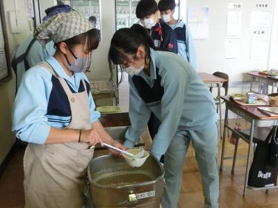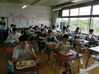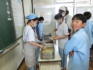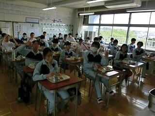 給食の配膳の様子です。3年生は2クラスとも素早く配膳を済ませ、食事をしていました。