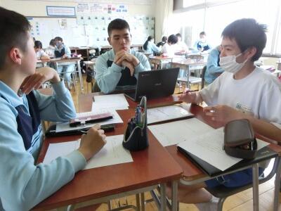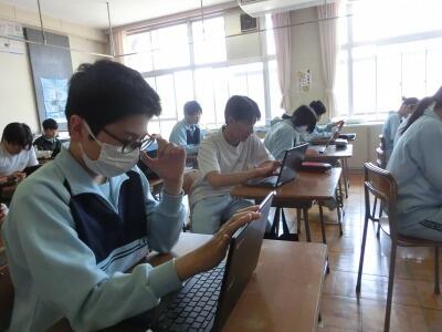 5校時の様子です。1年生は内科検診、2年生はとちぎっ子学力調査の生徒質問をリモートで答える活動、3年生は修学旅行の班別研修のコース決めでした。