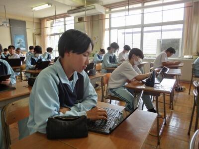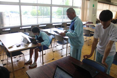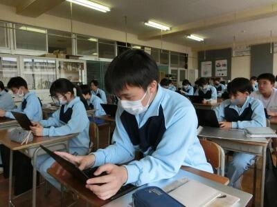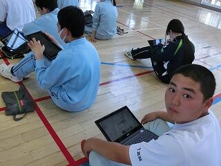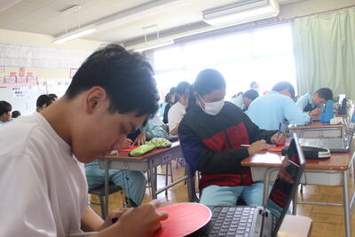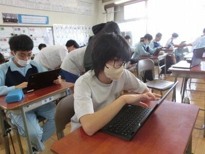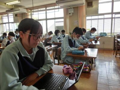 午後、3年生は全国学力調査(理科・生徒質問)をタブレットで実施しました。一方2年生は保健体育で100m走、技術で農園作業を行っていました。