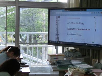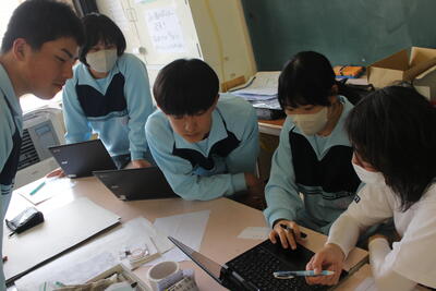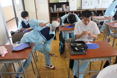 カフートというアプリを使い、各クラスをリモートで繋いで行いました。