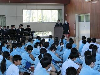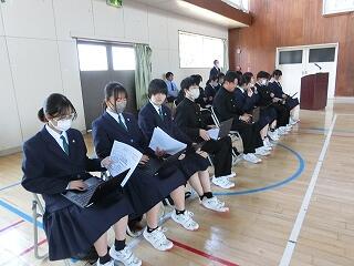 3年生の様子(写真は生徒質問が始まる前の様子)
