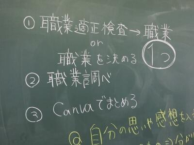 2年生 総合 canvaでまとめる。職業しらべ。この時間に内科検診が行われていました。