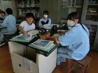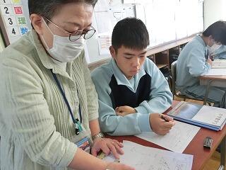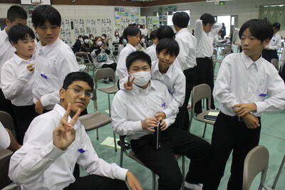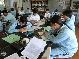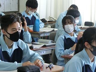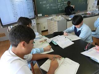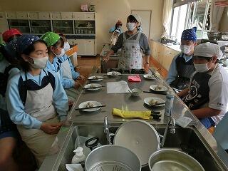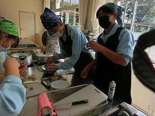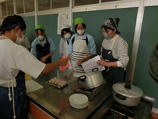 4校時の授業の様子です。1年生の家庭科調理実習では、今回も5名の方に授業支援ボランティアをしてご協力をいただきました。