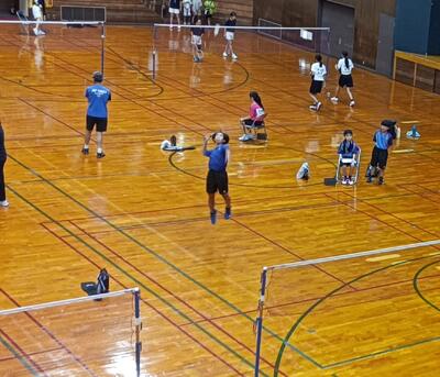 郡市新人バドミントン大会は本日個人戦です。久下田中から2年生1名が参加しています。