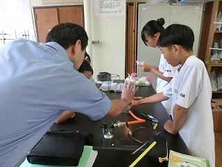 《1-2》理科 水にとけた物質のとり出しの実験をしていました