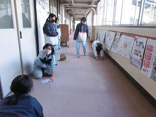 明日、2年生は立志式を迎えます。1年生は会場を準備しました。また、3年生は、体育館周辺、駐車場、旧吉田整形外科駐車場を清掃しました。