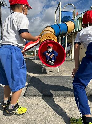 11月7日、生活科見学の昼食後は、子ども広場で自由時間です。