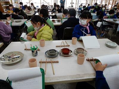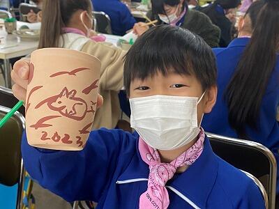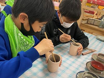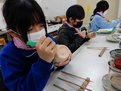 子どもたちが楽しみにしていた湯飲みの絵付け体験です。