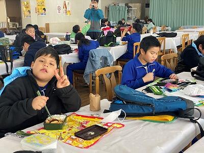 お昼のお時間です。みんなお弁当をおいしそうに食べていました。