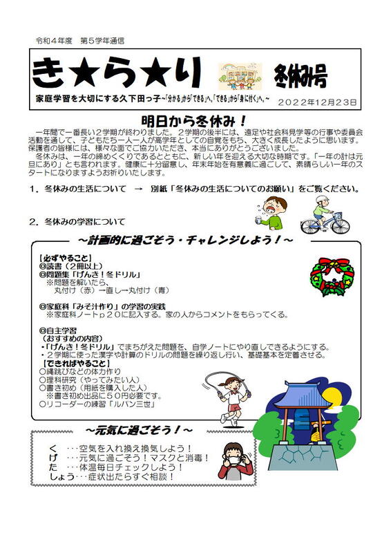5年生のページ 全ての記事 全ての記事 カテゴリ 今日の出来事 連絡事項 報告事項 ミーティング 本・雑誌 ニュース 映画・テレビ 音楽 スポーツ パソコン・インターネット ペット 総合学習 アニメ・コミック アーカイブ 2025年12月 (0) 2025年11月 (0) 2025年10月 (1) 2025年9月 (0) 2025年8月 (0) 2025年7月 (0) 2025年6月 (0) 2025年5月 (0) 2025年4月 (0) 2025年3月 (0) 2025年2月 (0) 2025年1月 (0) 2024年12月 (0) 2024年11月 (0) 2024年10月 (0) 2024年9月 (0) 2024年8月 (0) 2024年7月 (0) 2024年6月 (0) 2024年5月 (0) 2024年4月 (0) 2024年3月 (0) 2024年2月 (0) 2024年1月 (0) 2023年12月 (0) 2023年11月 (0) 2023年10月 (0) 2023年9月 (0) 2023年8月 (0) 2023年7月 (0) 2023年6月 (0) 2023年5月 (0) 2023年4月 (0) 2023年3月 (0) 2023年2月 (2) 2023年1月 (1) 2022年12月 (3) 2022年11月 (1) 2022年10月 (2) 2022年9月 (2) 2022年8月 (4) 2022年7月 (2) 2022年6月 (4) 2022年5月 (2) 2022年4月 (3) 2022年3月 (1) 2022年2月 (1) 2022年1月 (1) 2021年12月 (2) 2021年11月 (0) 2021年10月 (0) 2021年9月 (0) 2021年8月 (1) 2021年7月 (1) 2021年6月 (0) 2021年5月 (1) 2021年4月 (0) 2021年3月 (1) 2021年2月 (1) 2021年1月 (1) 2020年12月 (0) 2020年11月 (0) 2020年10月 (1) 2020年9月 (1) 2020年8月 (0) 2020年7月 (1) 2020年6月 (1) 2020年5月 (0) 2020年4月 (3) 2020年3月 (1) 2020年2月 (0) 2020年1月 (0) 2019年12月 (0) 2019年11月 (0) 2019年10月 (1) 2019年9月 (2) 2019年8月 (0) 2019年7月 (0) 2019年6月 (0) 2019年5月 (0) 2019年4月 (0) 2019年3月 (0) 2019年2月 (0) 2019年1月 (0) 2018年12月 (0) 2018年11月 (0) 2018年10月 (0) 2018年9月 (0) 2018年8月 (0) 2018年7月 (0) 2018年6月 (2) 5件 1件 5件 10件 20件 50件 100件 日光遠足 投稿日時 : 10/01 久下田小5年 5学年だより3月号 投稿日時 : 2023/02/28 久下田小5年 5学年だより2月号 投稿日時 : 2023/02/07 久下田小5年 5学年だより1月号 投稿日時 : 2023/01/14 久下田小5年 5学年だより冬休み号 投稿日時 : 2022/12/21 久下田小5年 123456789 »