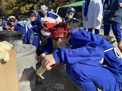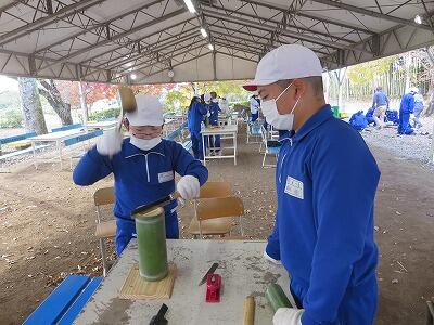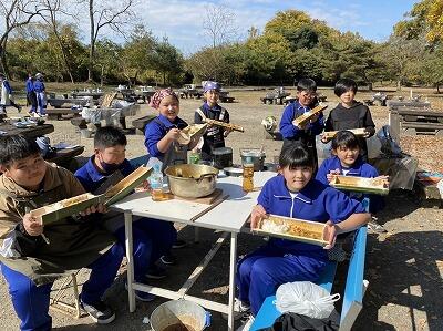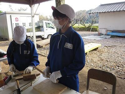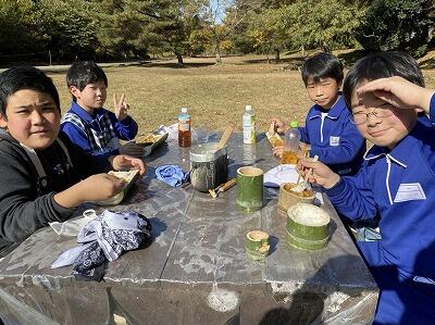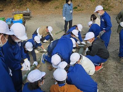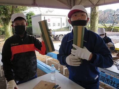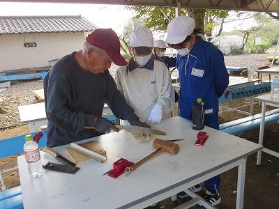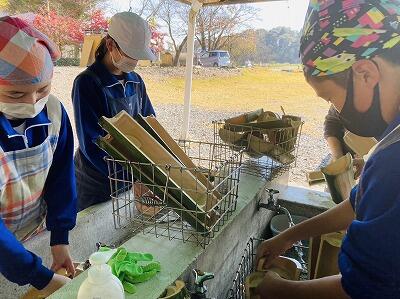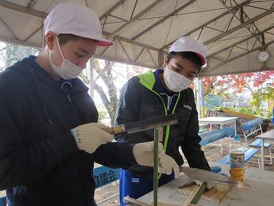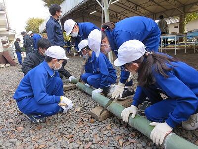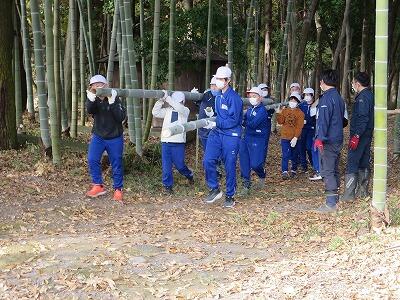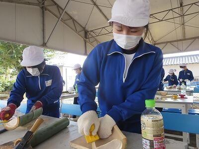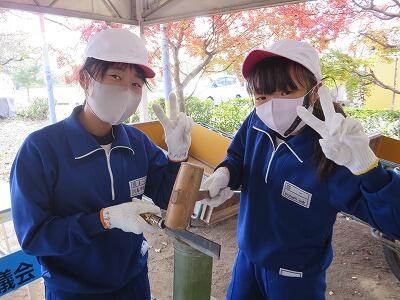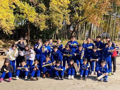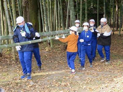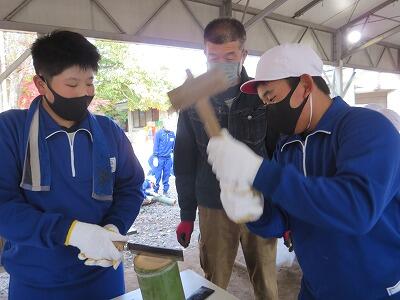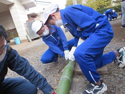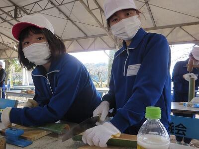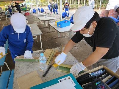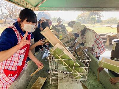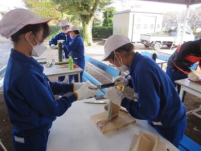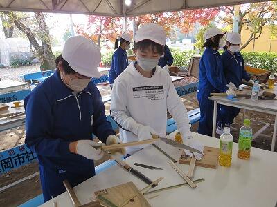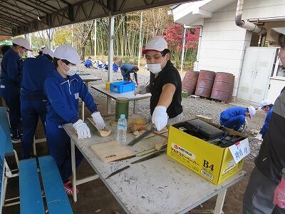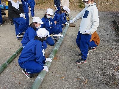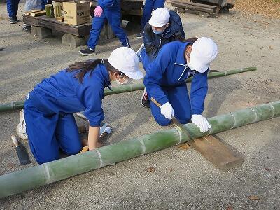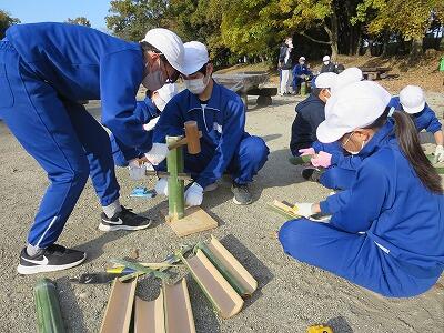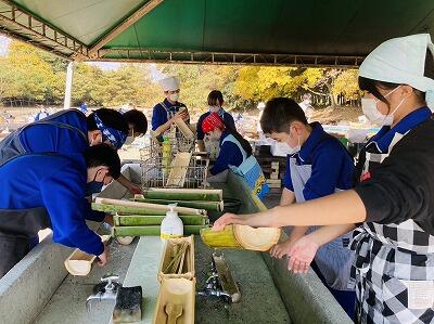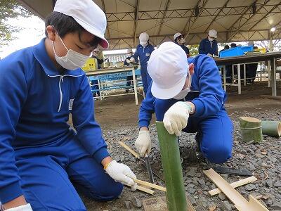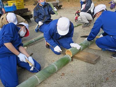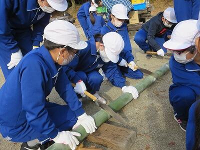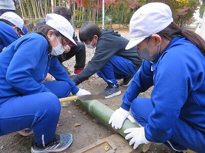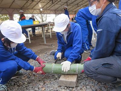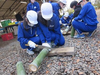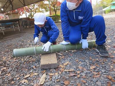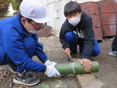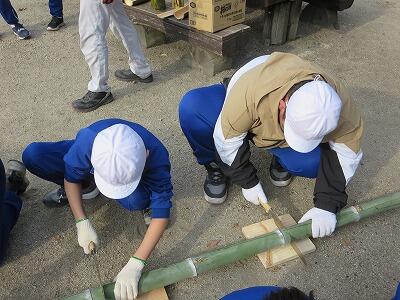 午後の活動は、明日の野外調理で使う竹食器作りです。