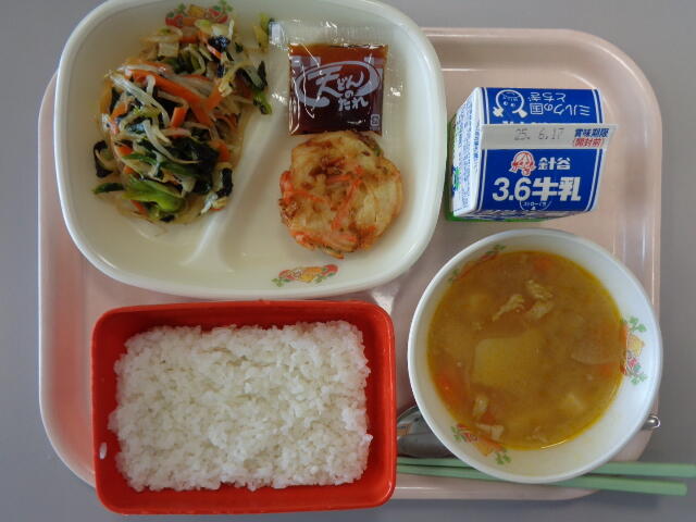 ★今日の給食もとっても美味しそうですね❣❣ 感謝の気持ちを忘れずに、しっかり噛んで、しっかり味わって、そして健康第一を考え、好き嫌いせずなるべく残さないように食べましょう。それでは「いただきます!」(#^.^#)。