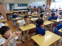 ★5年2組(家庭科)では、ボランティアさんにも手伝っていただきながら、とても楽しそうに「調理実習」に臨んでいました。