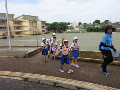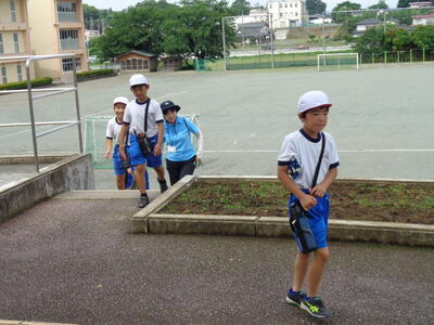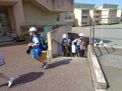 →その場に座って、放送を聞く。教室内でも廊下でもその場に座る。放送が聞き終わったら、6年生は1年生を教室まで連れていく。