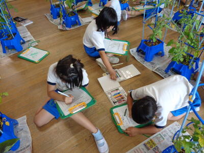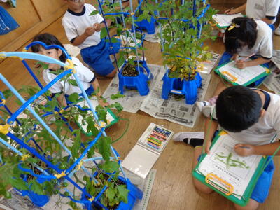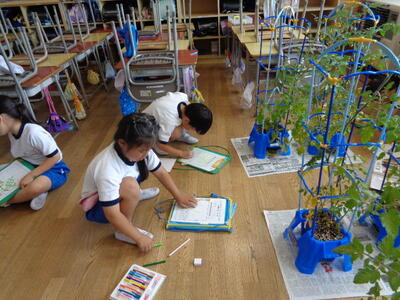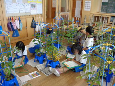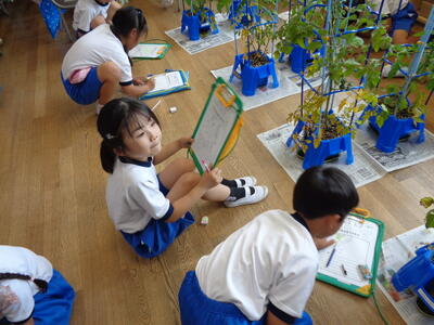 ★子供たちは瞳を輝かせながら、夢中になって「ヘチマの観察」に取り組んでいました(#^.^#)。