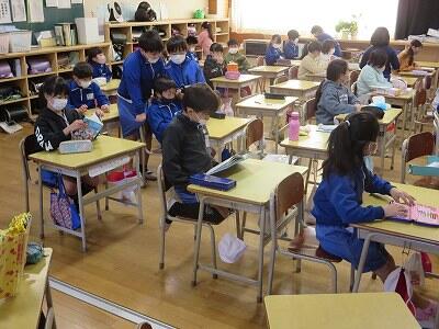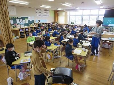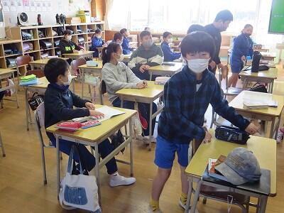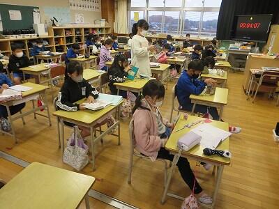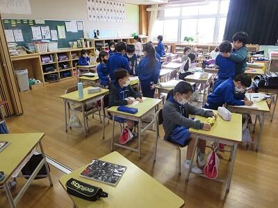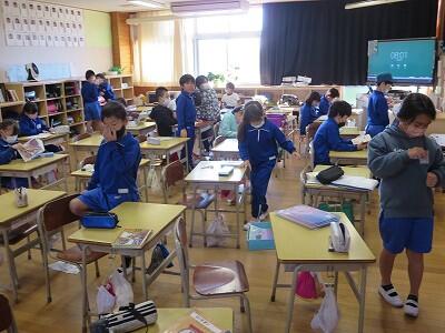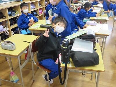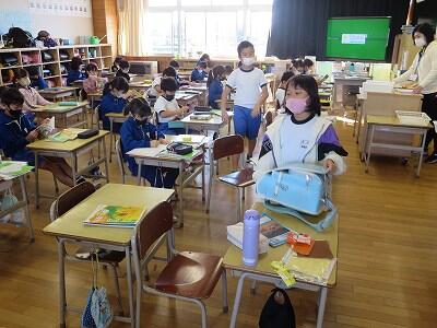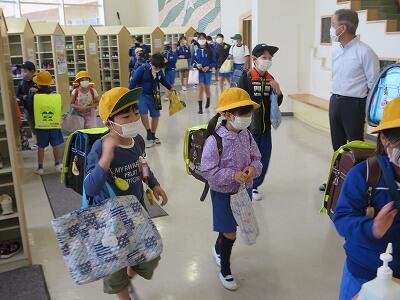 下校時刻は、5時間授業の場合14:25、6時間授業の場合15:20になります。