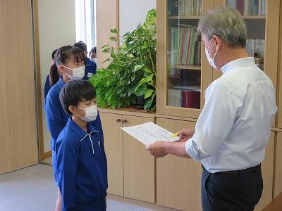 9月27日、校長室において、学級委員任命式が行われました。