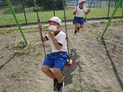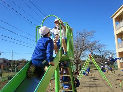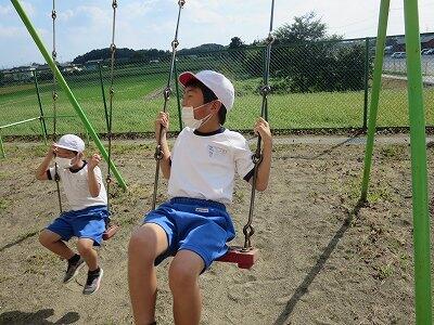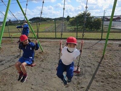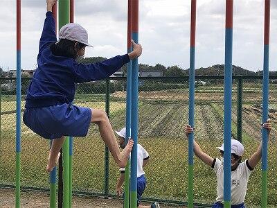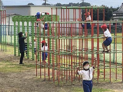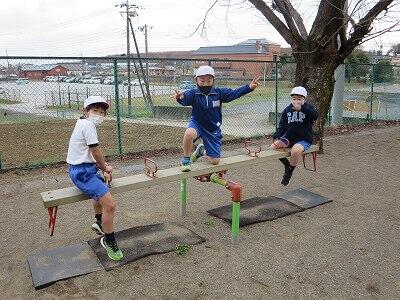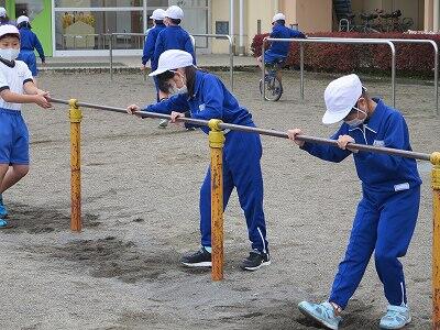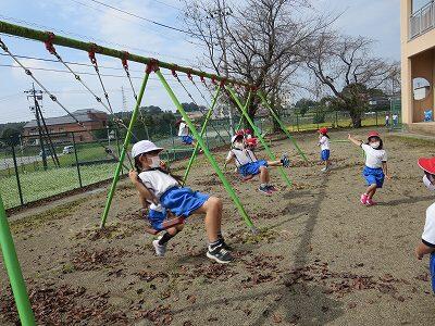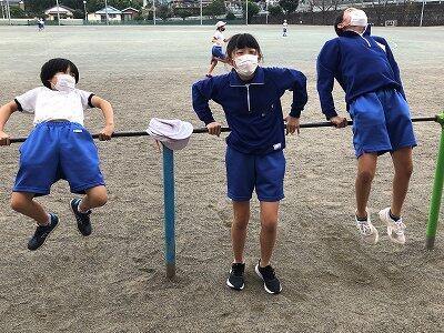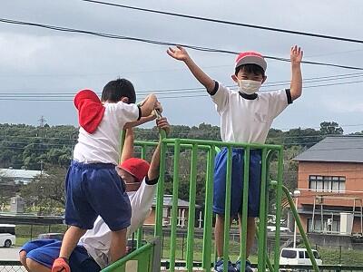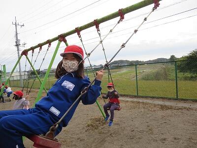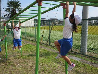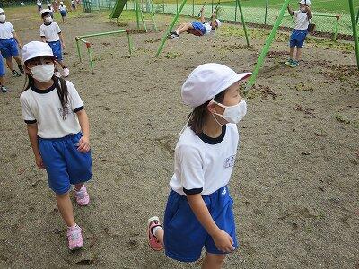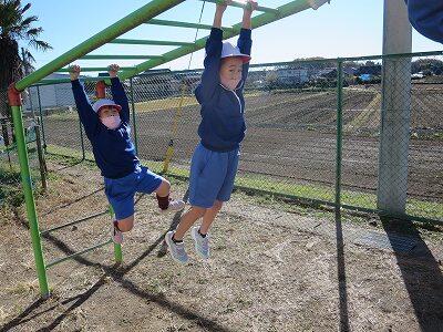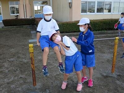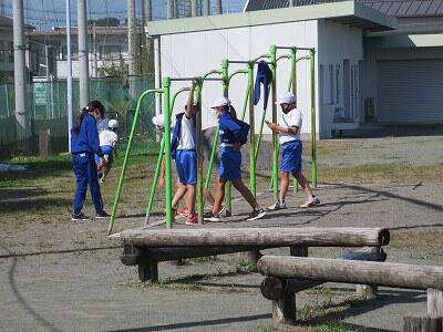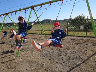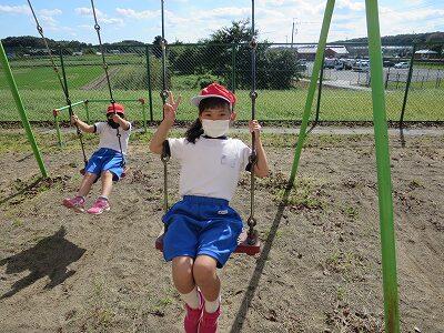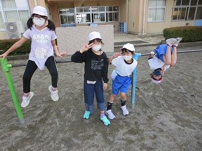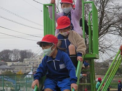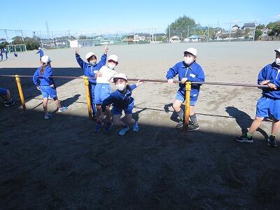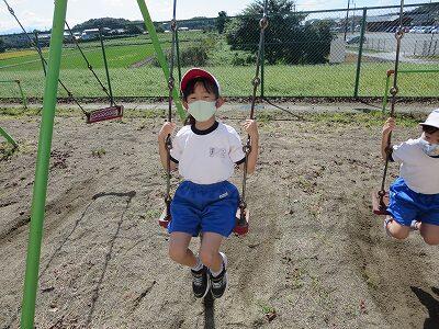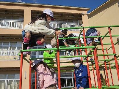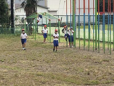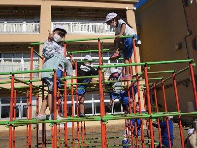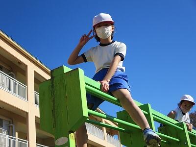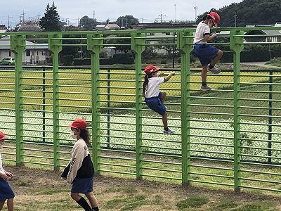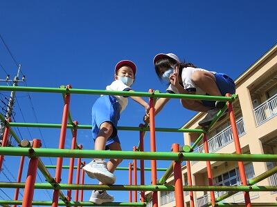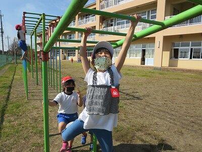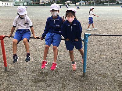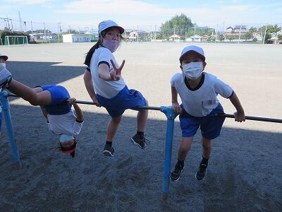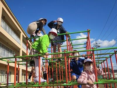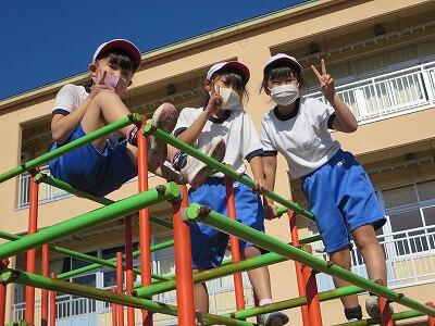 晴天のもと、校庭で元気に遊ぶ子どもたちでした。