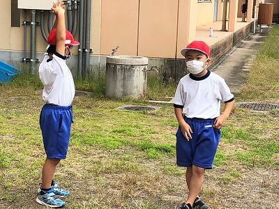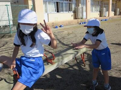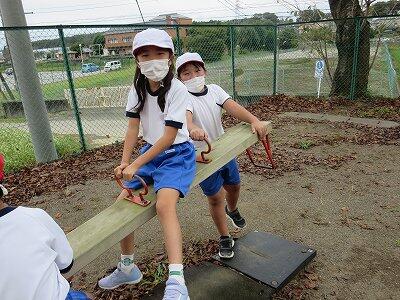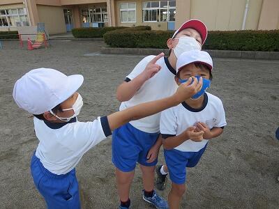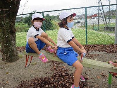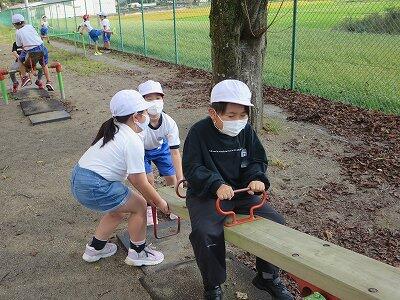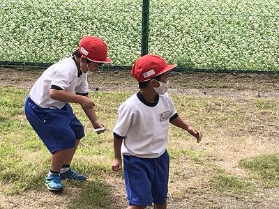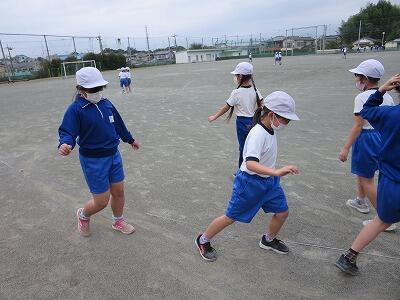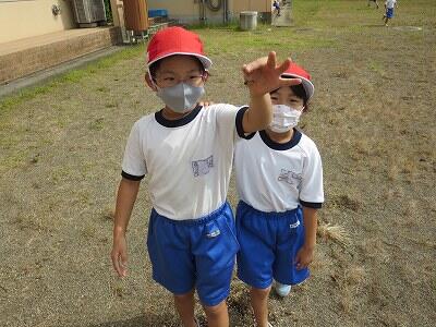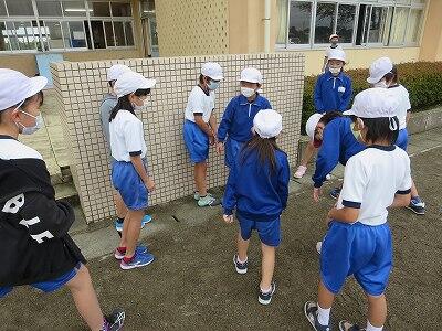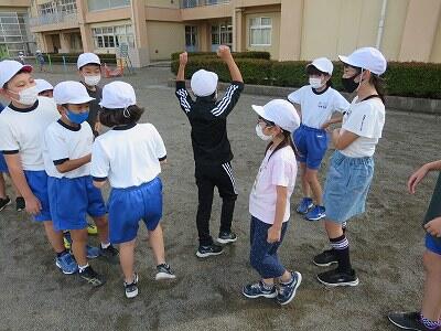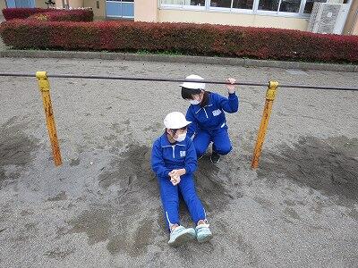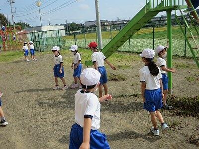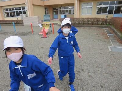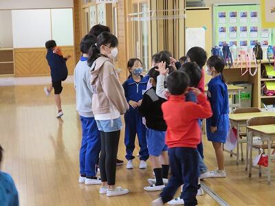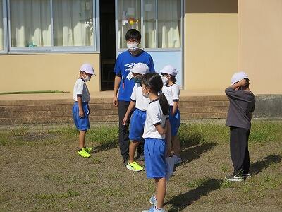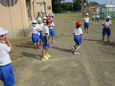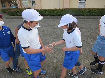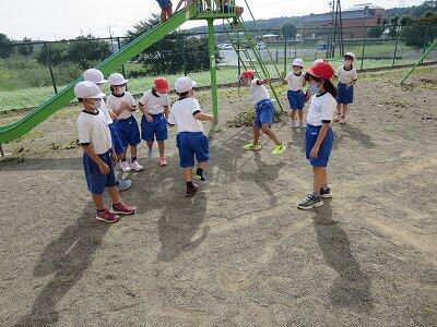 4年生が「だるまさんが転んだ」で遊んでいました。