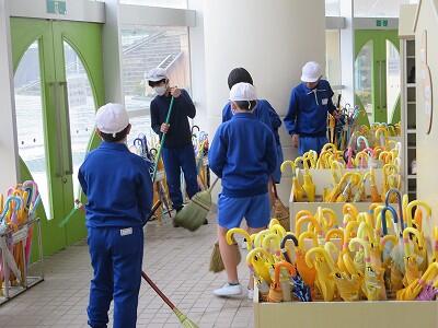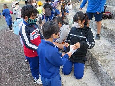 朝のあいさつ運動は、企画委員さんたちが工夫して取り組んでいます。