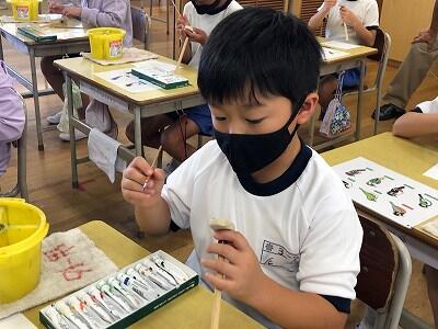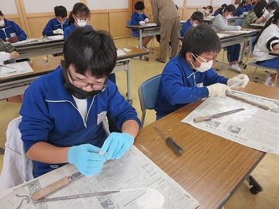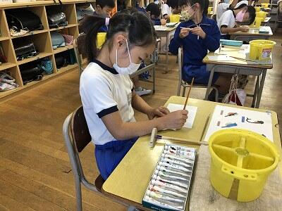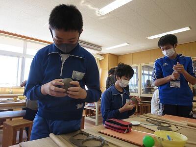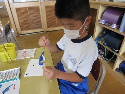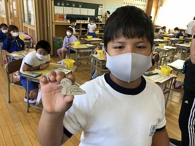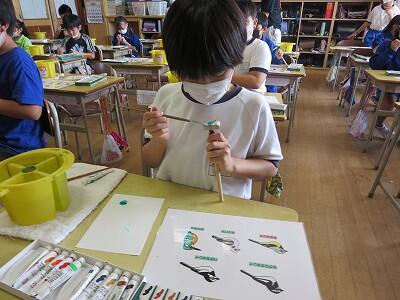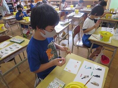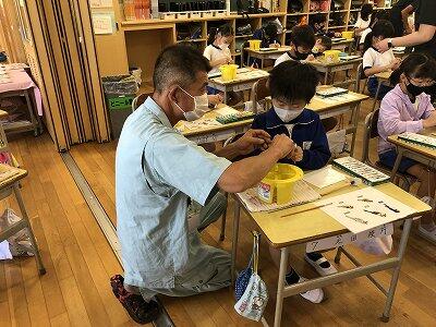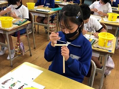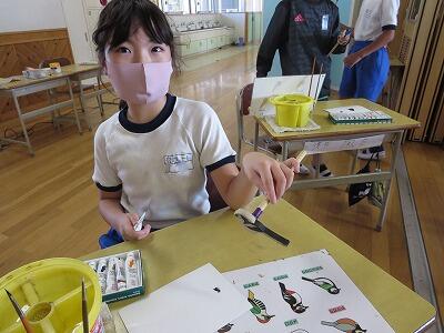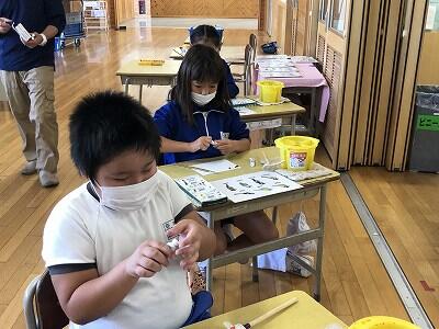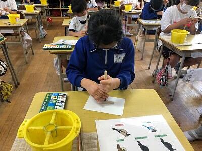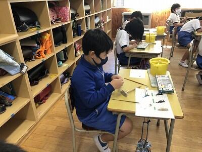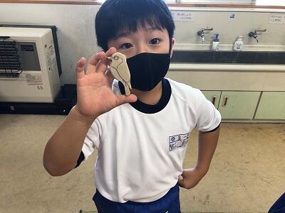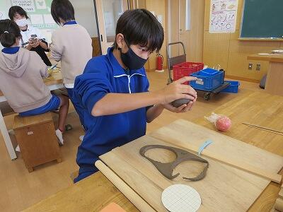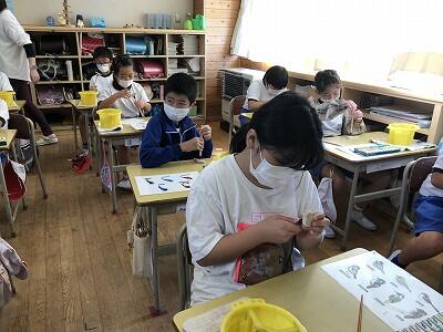 10月8日、3年生が自然体験活動で、「野鳥ブローチ」作りに励みました。