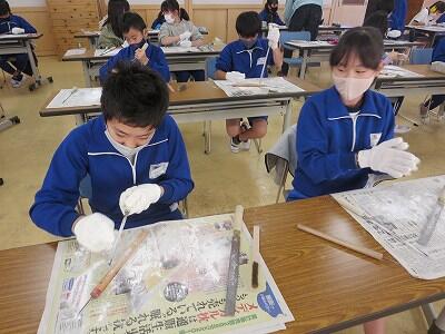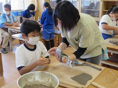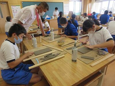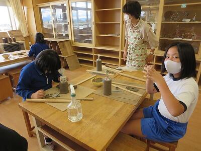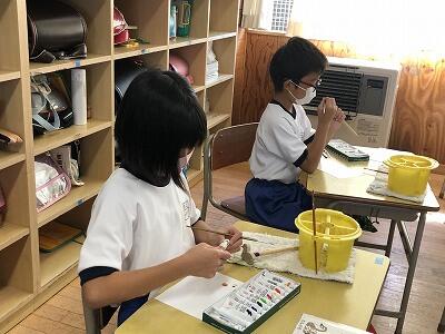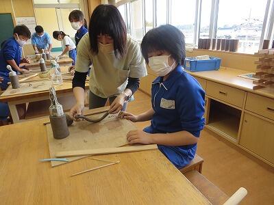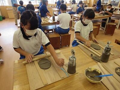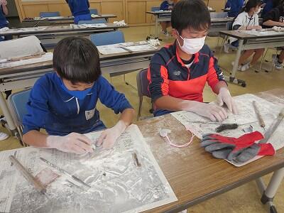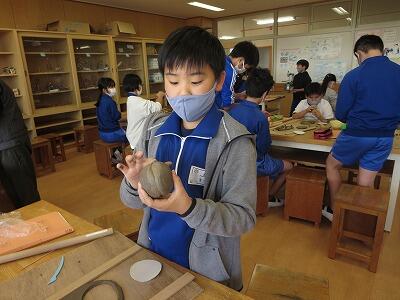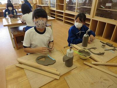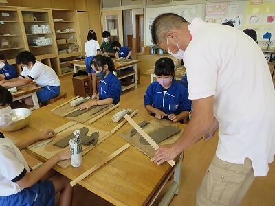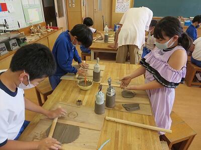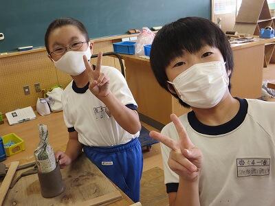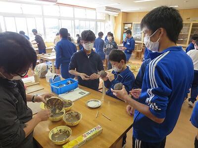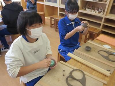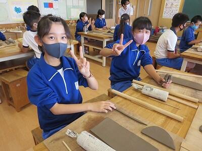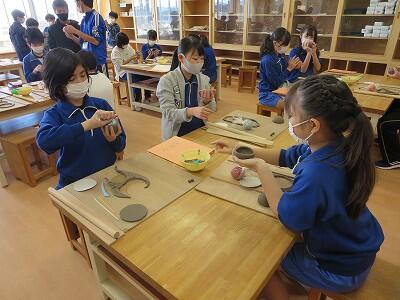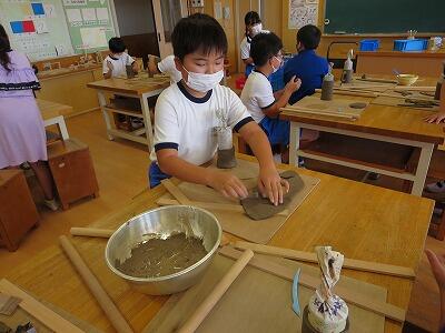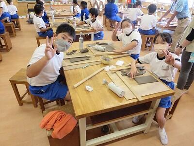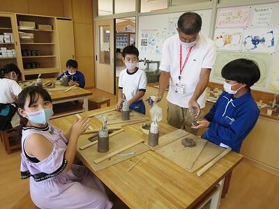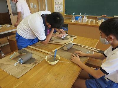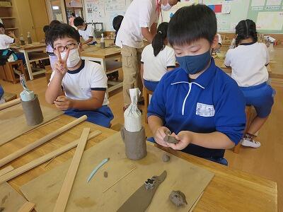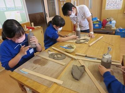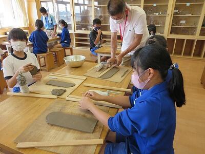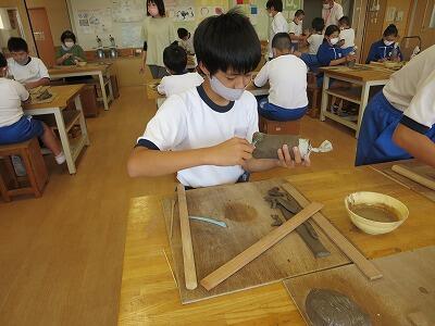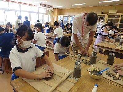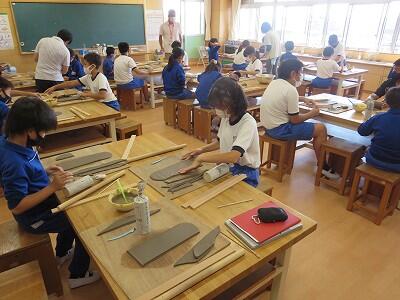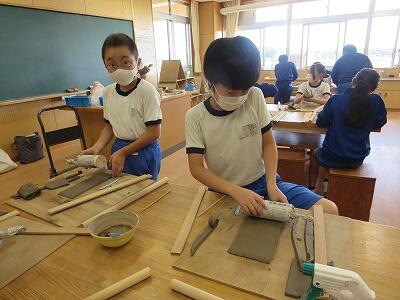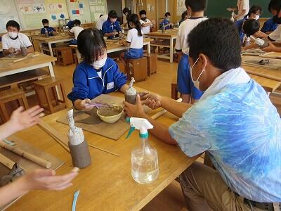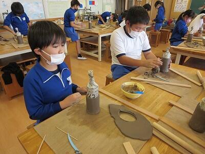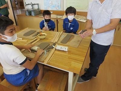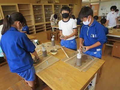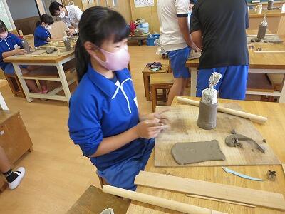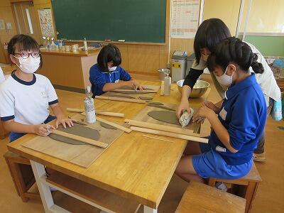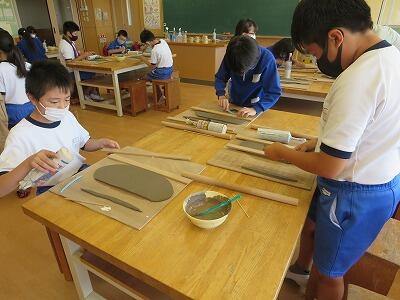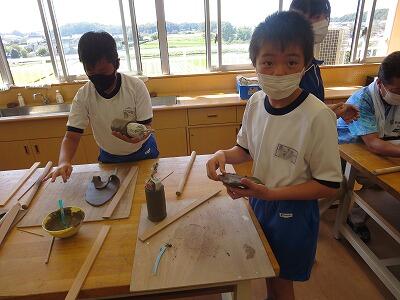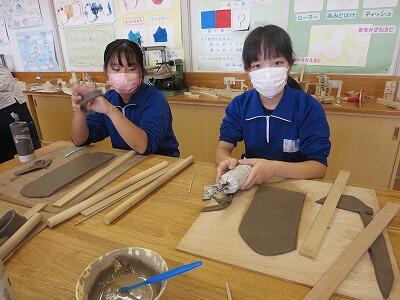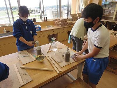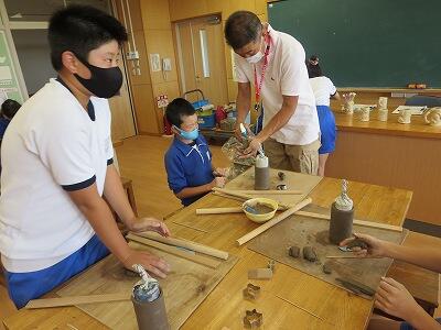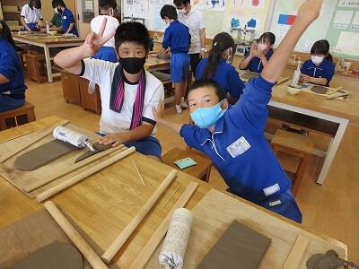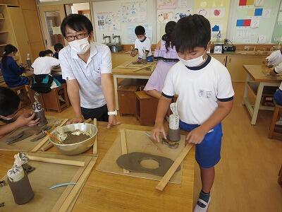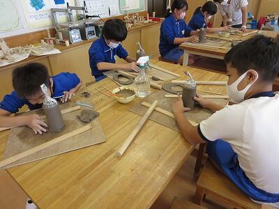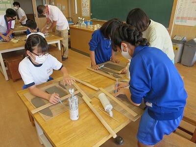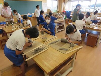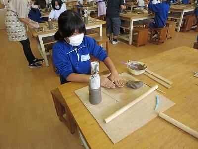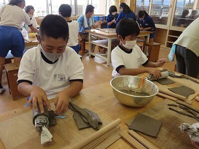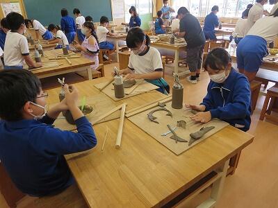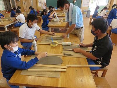 10月6日、5年生がクラスごとに、自然体験活動の陶芸を行いました。