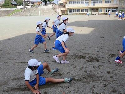 先生と走る子どもたち、いい表情していました。
