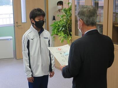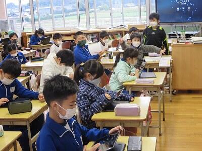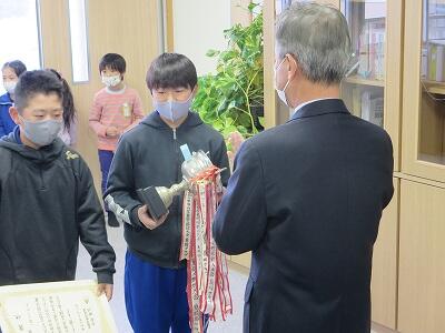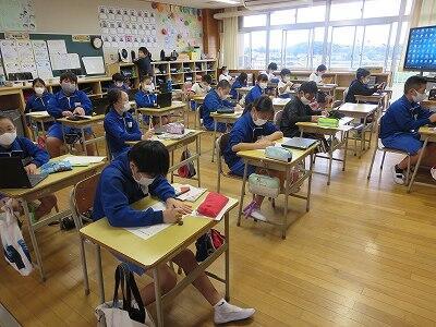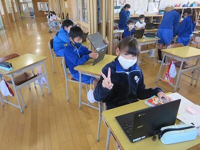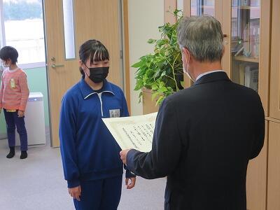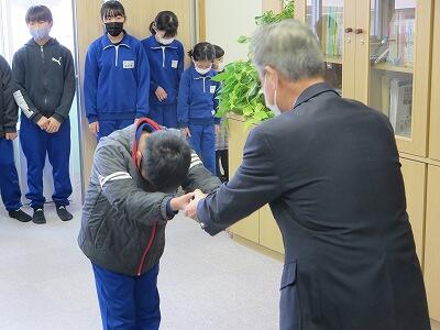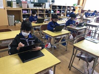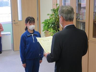 12月6日、校長室において、zoomでの朝会・表彰が行われました。