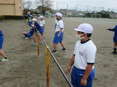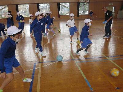 先生の巧みな指導を受け、楽しみながら、しかも運動量のある授業で、子どもたちは大喜びの様子でした。